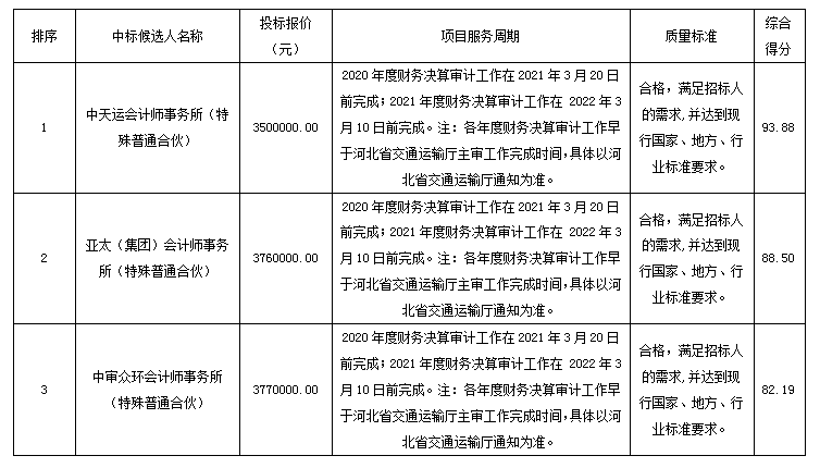 全部投标单位: 中喜会计师事务所(特殊普通合伙),中兴财光华会计师事务所(特殊普通合伙),中审众环会计师事务所(特殊普通合伙),亚太(集团)会计师事务所(特殊普通合伙),大信会计师事务所(特殊普通合伙),中天运会计师事务所(特殊普通合伙),中瑞诚会计师事务所(特殊普通合伙),
