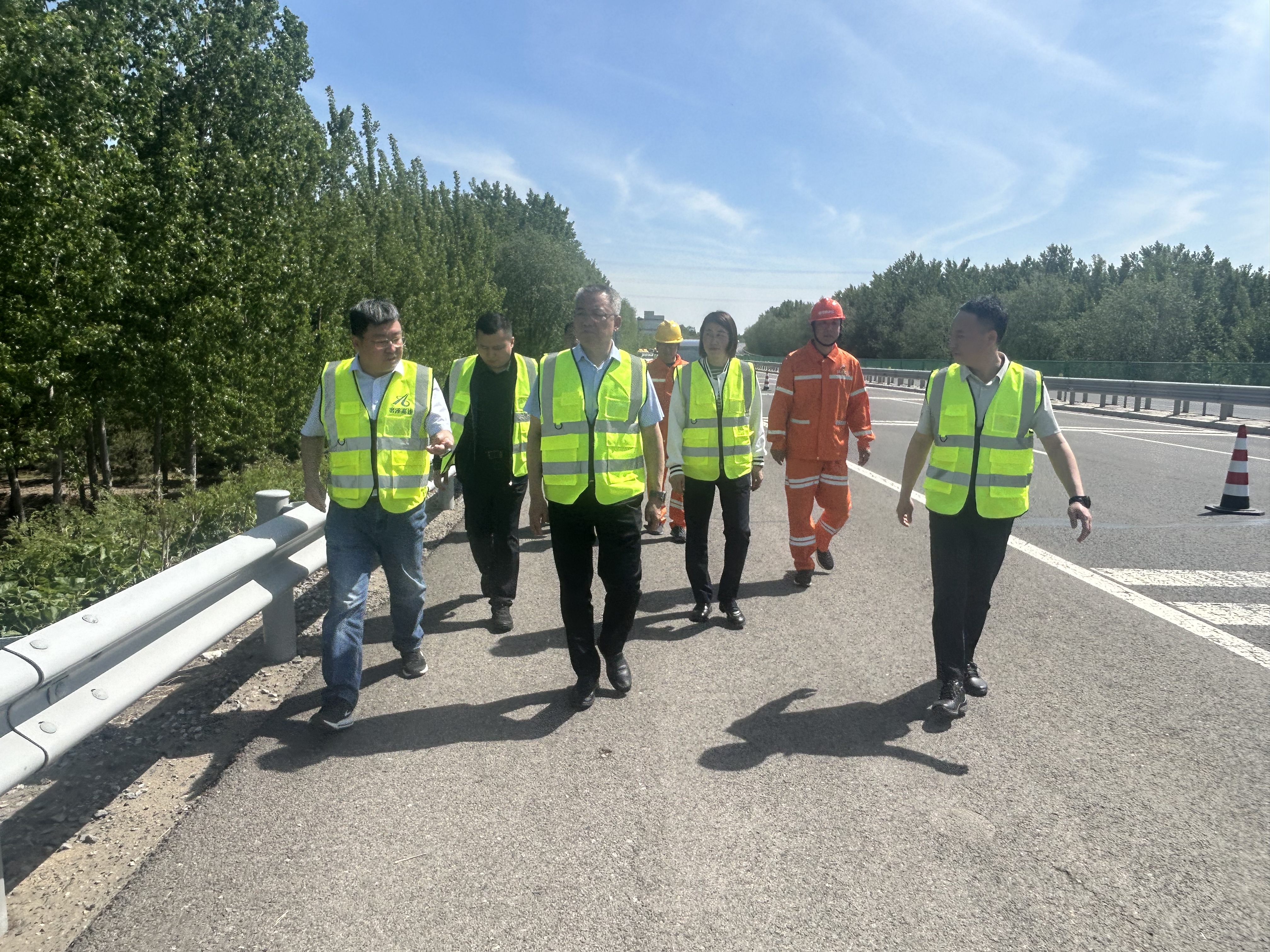 在廊坊分公司,张建公随车察看了廊坊分公司管辖路段的行车环境,徒步踏查了首都环线高速K156-K157段和京秦铁路大桥的路域环境治理情况,他强调,廊坊分公司要持续贯彻落实好集团公司“路域环境专项提升年”活动各项要求,加大机械、人力投入力度,提高保洁效率和质量,全力打造整洁、有序、畅通的路域环境;要不断深化路域环境治理工作,创新管理手段和技术措施,推动路域环境治理工作再上新台阶;要加强与相关部门的沟通协调,形成工作合力,共同推动路域环境治理工作取得显著成效。