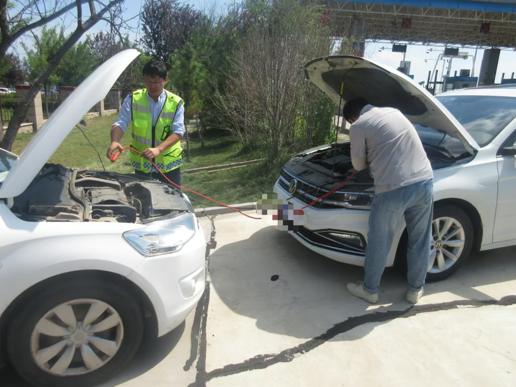 经了解,车辆在行驶过程出现故障,无法正常行驶。收费员得知这一情况后,第一时间报告给班长。班长赶到了解情况后,得知车辆已无法启动,在和司机沟通后,先帮助司机将车辆推到广场安全地带,迅速组织经验丰富的工作人员对车辆故障进行初步排查,发现故障是由于车辆电瓶亏电无法正常工作,班长赶忙取出便民服务台的搭车线,联系了站内同事的车,帮助司机将车辆顺利启动,司机激动的说:“多亏你们,不然我一个人真不知道咋办。”班长说道:“您太客气了,这是我们应该做的。”