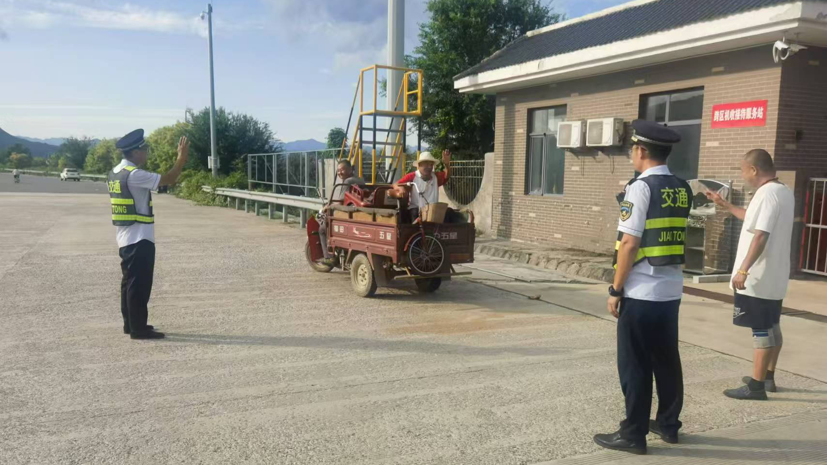 2024 年 9 月 6 日下午,清东陵收费站如往常一样忙碌而有序地运转着。就在这时,当班疏导员发现一位老人骑着三轮车误入高速公路入口,情况十分危急。当班疏导员迅速反应,第一时间拦停了老人,并立即通过对讲机呼叫收费班长前来协助处理这一突发情况。