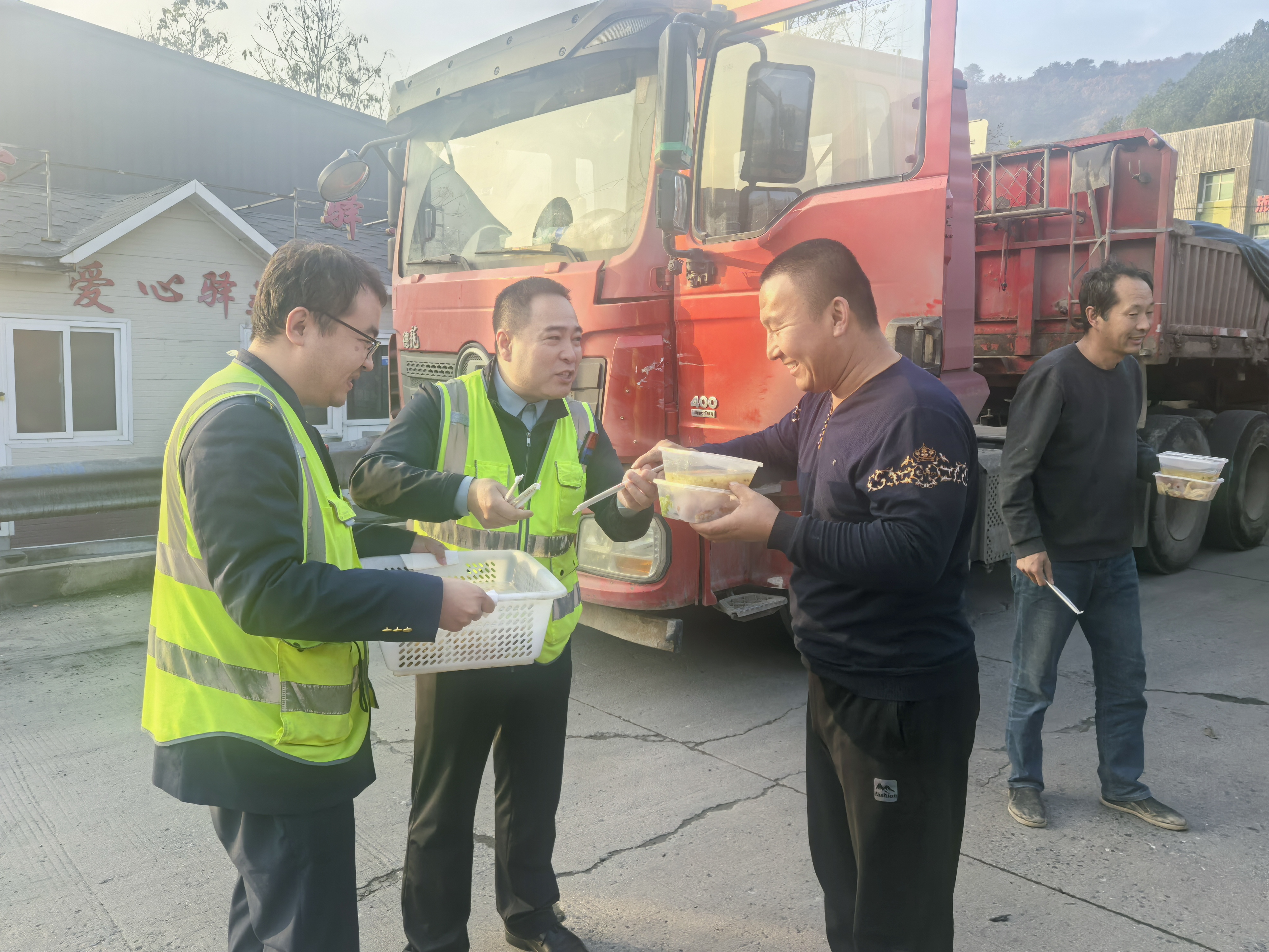 各收费站一线人员迅速开启延伸服务,设置简餐领取台、开放员工食堂、发放方便面等食品,为滞留司乘主动提供暖心服务,并做好解释工作,耐心安抚司乘人员的焦躁情绪。