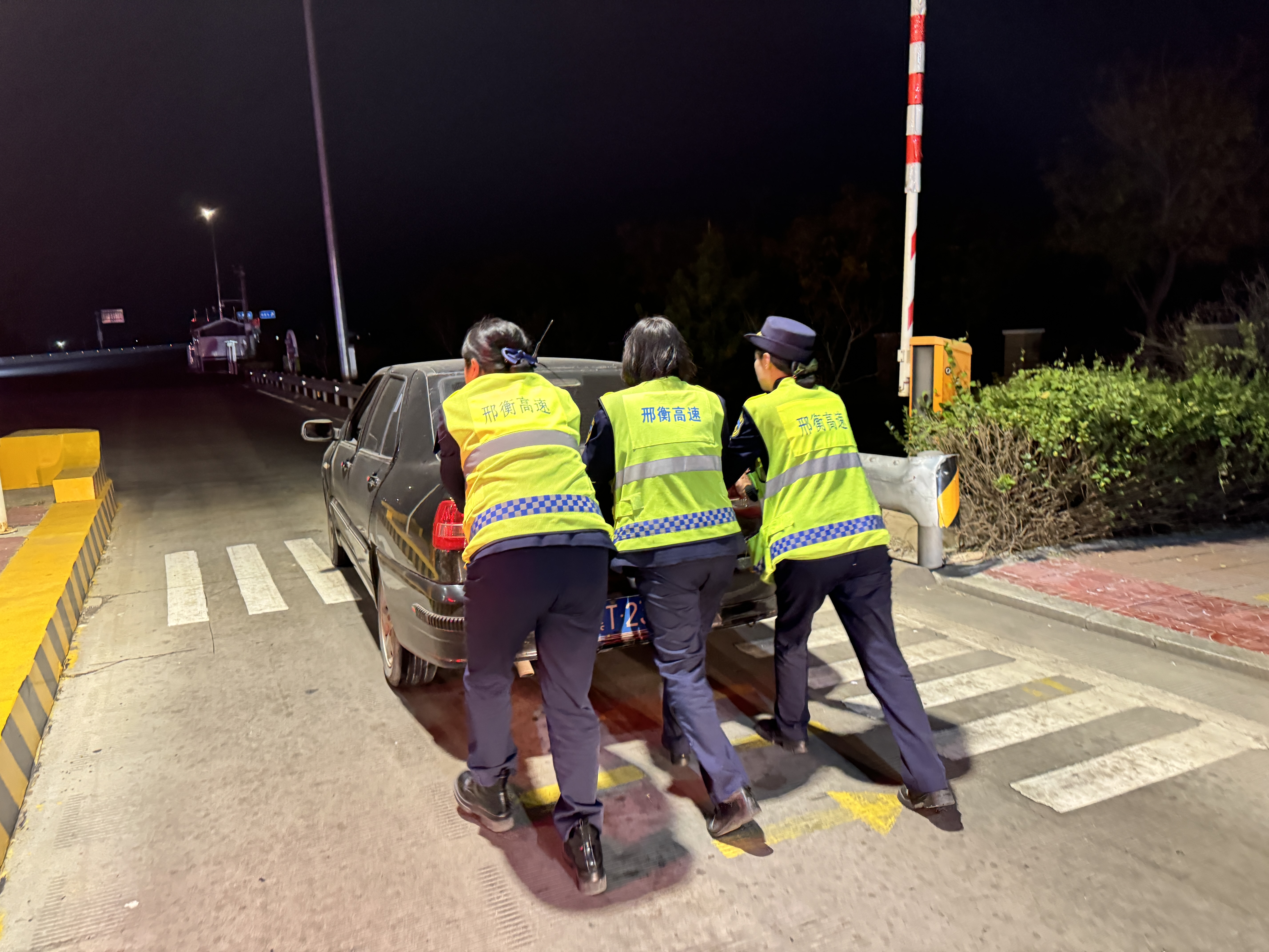 11月7日晚,一辆小客车驶入衡水北收费站106车道后熄火,多次打火均无法正常启动,在岗收费员立即将情况上报当班班长。