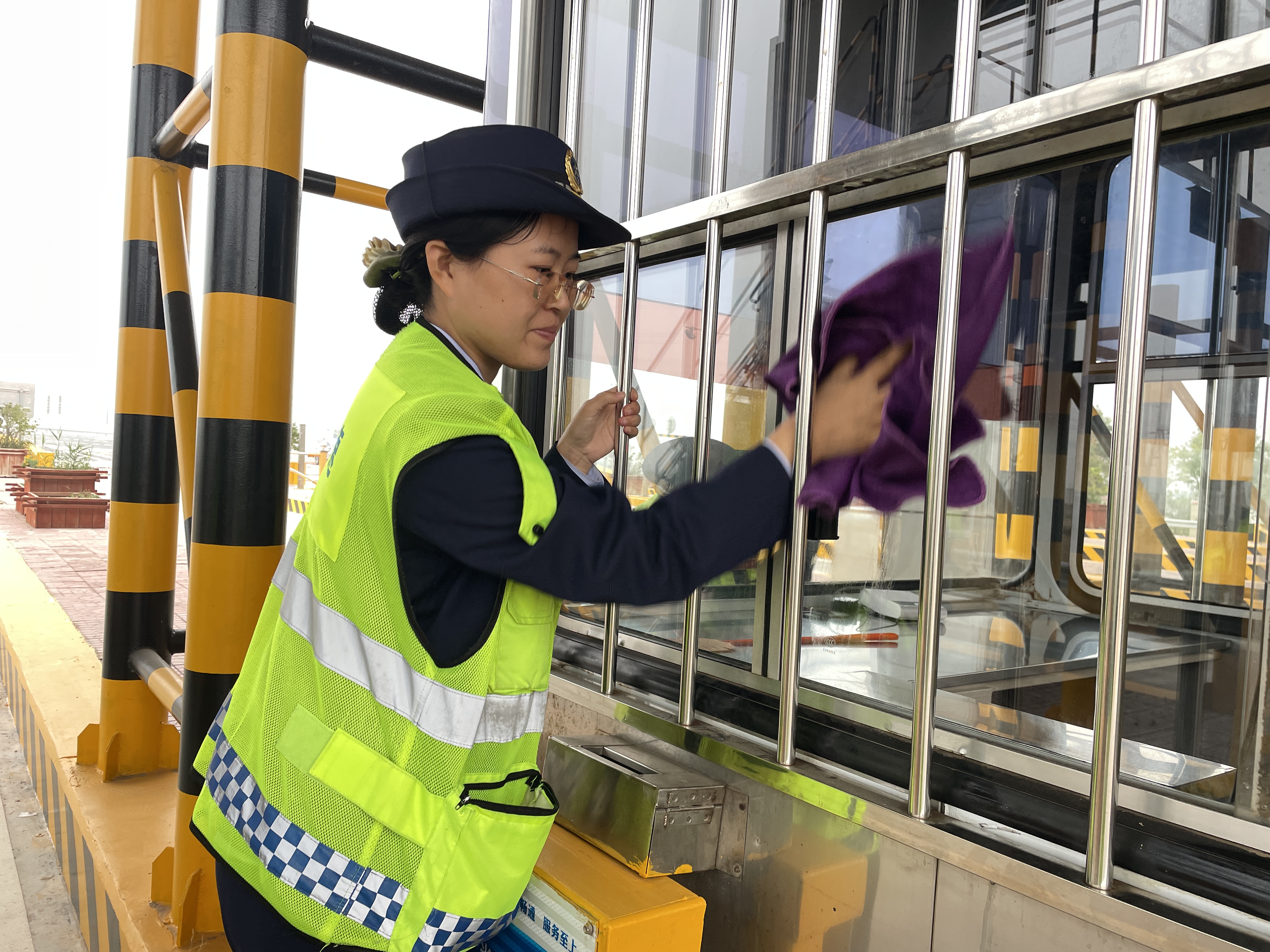 一是做好收费站区及收费广场卫生整治工作。重点对收费岗亭、收费车道的护栏板、防撞柱、安全岛头等收费设施进行冲洗、擦拭,保持车道设备设施无积尘。