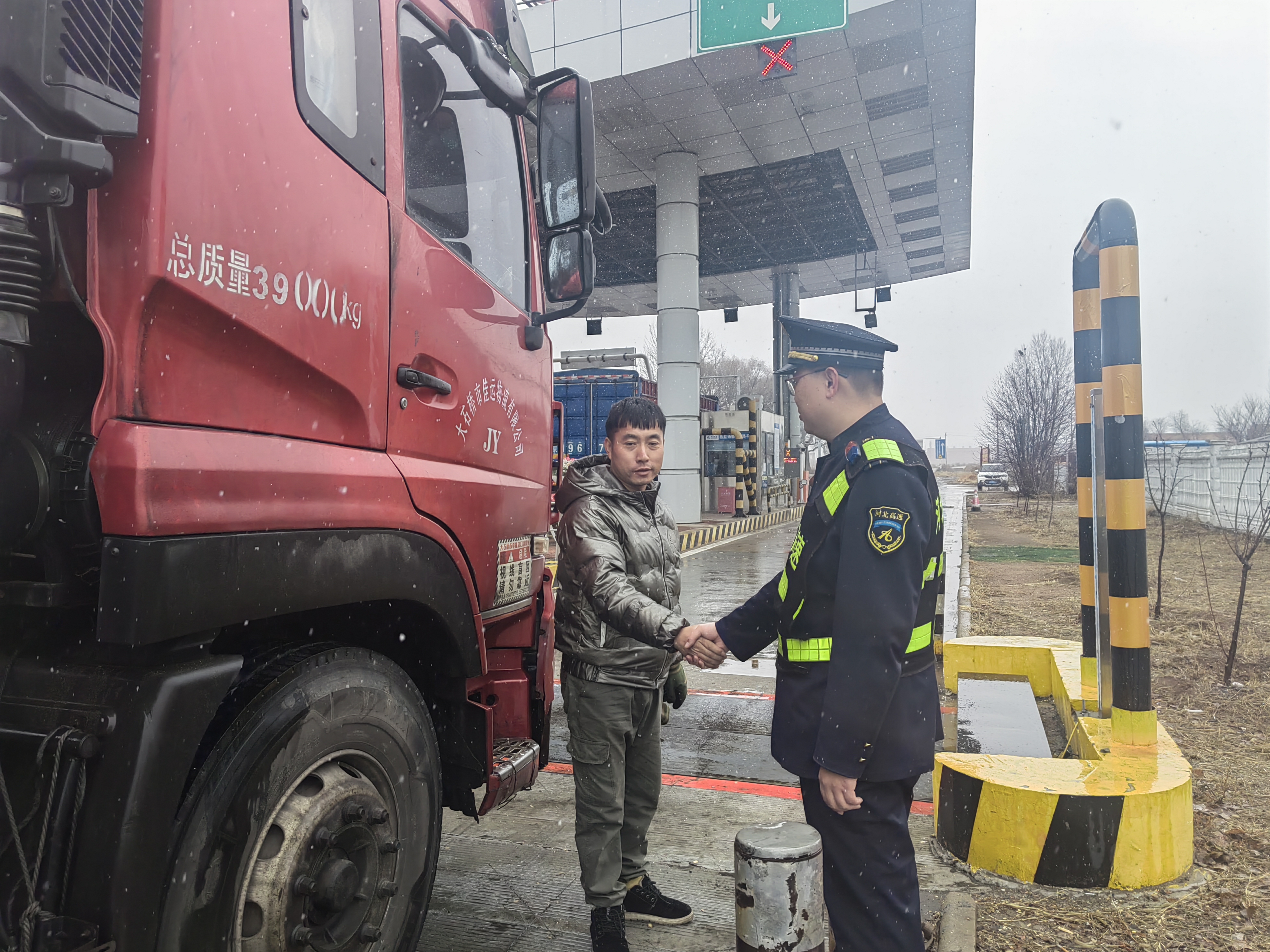 2024年11月25日,杨树岭收费站迎来了入冬的第一场雪。飞扬的小雪带来了寒冷,但在收费站却发生了暖心的一幕。