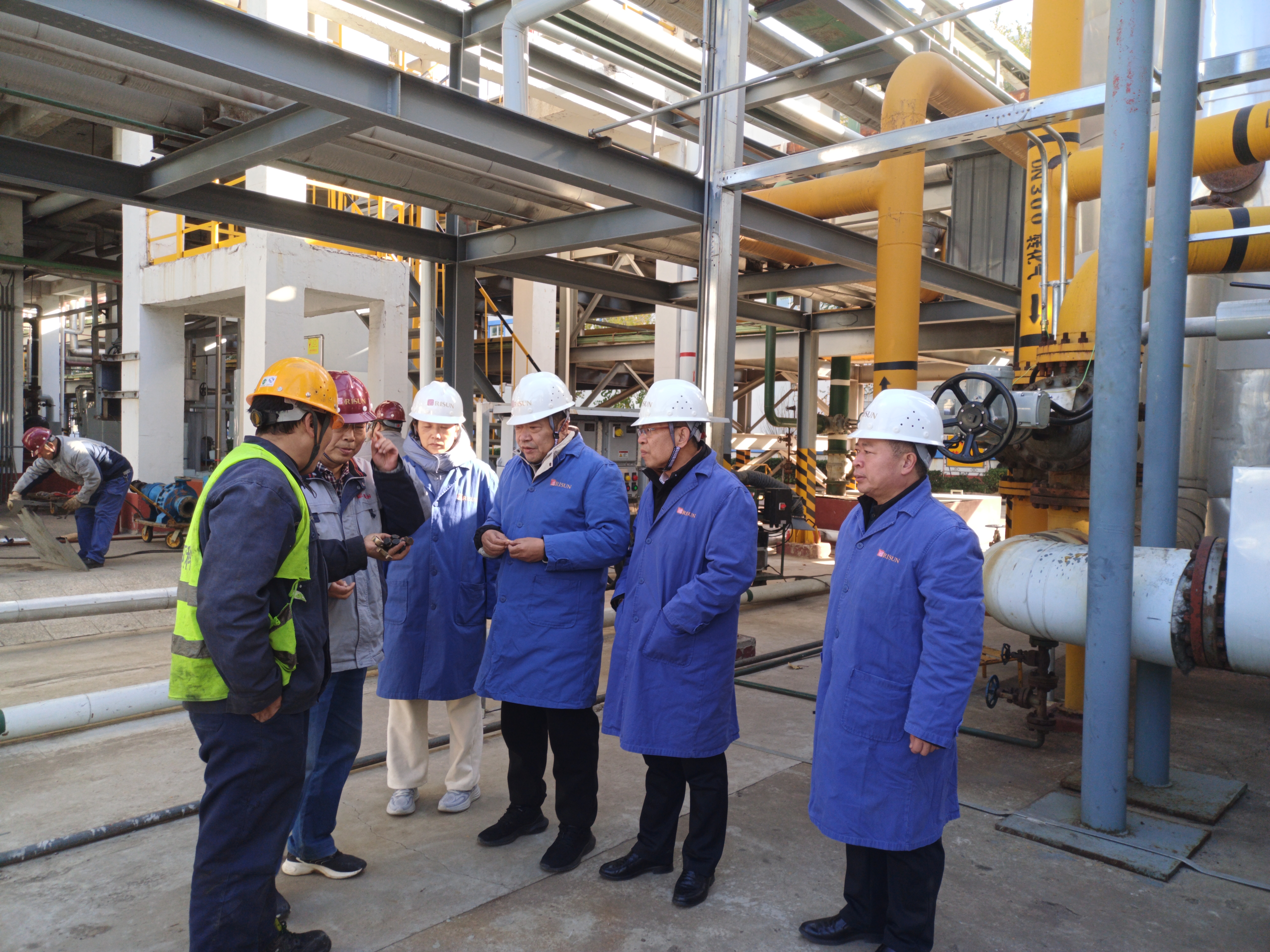 韩玉祥深入金牛旭阳生产现场,实地查看甲醇罐区、煤气柜、罗茨风机房、合成现场作业等重点岗位安全环保生产情况,并就重大危险源安全防范、隐患排查治理、施工作业控制等工作与相关负责人开展交流讨论。