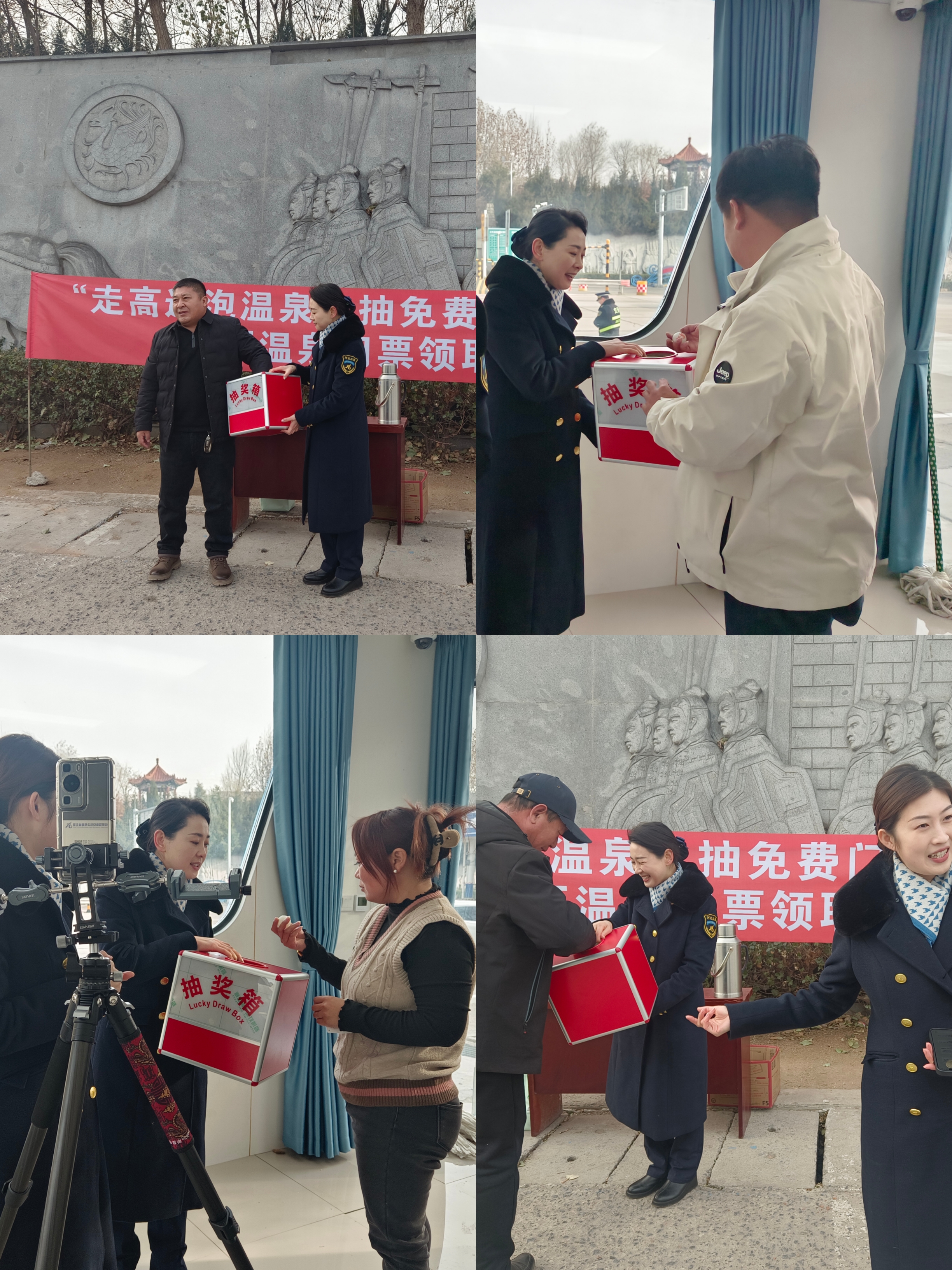 在活动现场,秦皇岛东站为下道的司乘人员准备了抽奖礼物,并提供热水、纸巾等便民服务。工作人员引导司乘人员从秦皇岛东收费站下高速前往东山浴场,体验冬日秦皇岛的大海之美,享受泡温泉看大海的惬意。