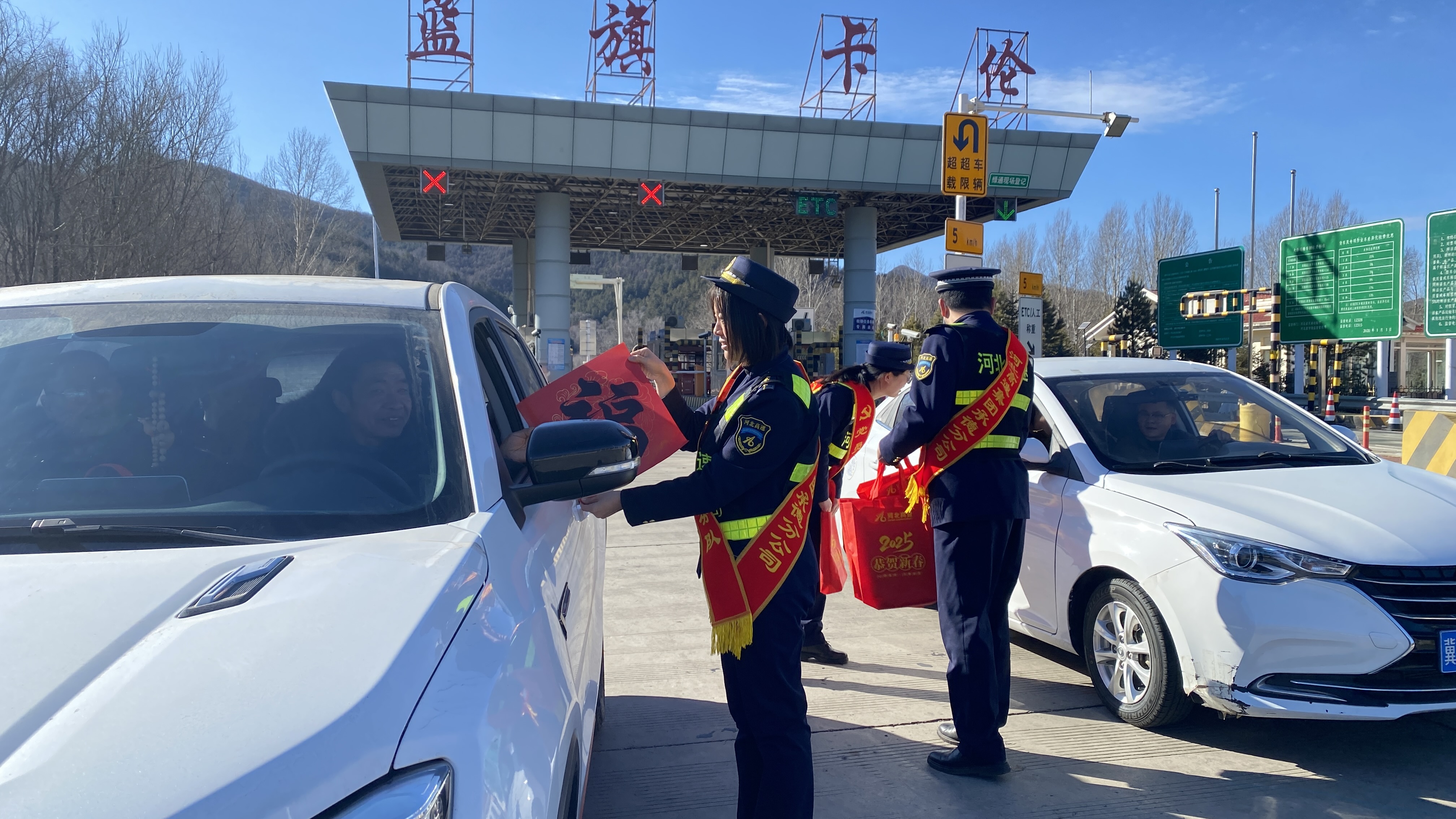 1月22日,农历小年,承德分公司蓝旗卡伦收费站口热闹非凡,一场 “新春送祝福 情满春运路” 主题活动在此热烈开展,为春运期间奔波在路上的司乘人员送去了浓浓的温暖与真挚的祝福。