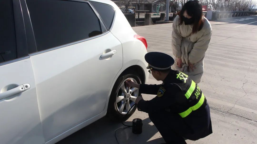 大年初五当天,车流量较往日明显增多,收费站里一片忙碌景象。一辆小轿车缓缓从平安城收费站下道后,停在收费广场。当班班长见状立即上前了解情况,只见司机脸上带着焦急的神色询问:“麻烦问下这附近哪里有修车补胎的地方啊?我在路上发现车胎气不足了,得去看看是不是扎了。”收费班长快速在脑海中梳理周边修车点信息,一边耐心地对司机说:“到修车的地方还有段路呢,我们这儿有打气泵,先帮您把气打足,这样您开着更安全。”说完,班长便拿来打气泵熟练地操作。随后,又将附近修车地址详细告知司机。司机再三道谢后,驾车驶离。