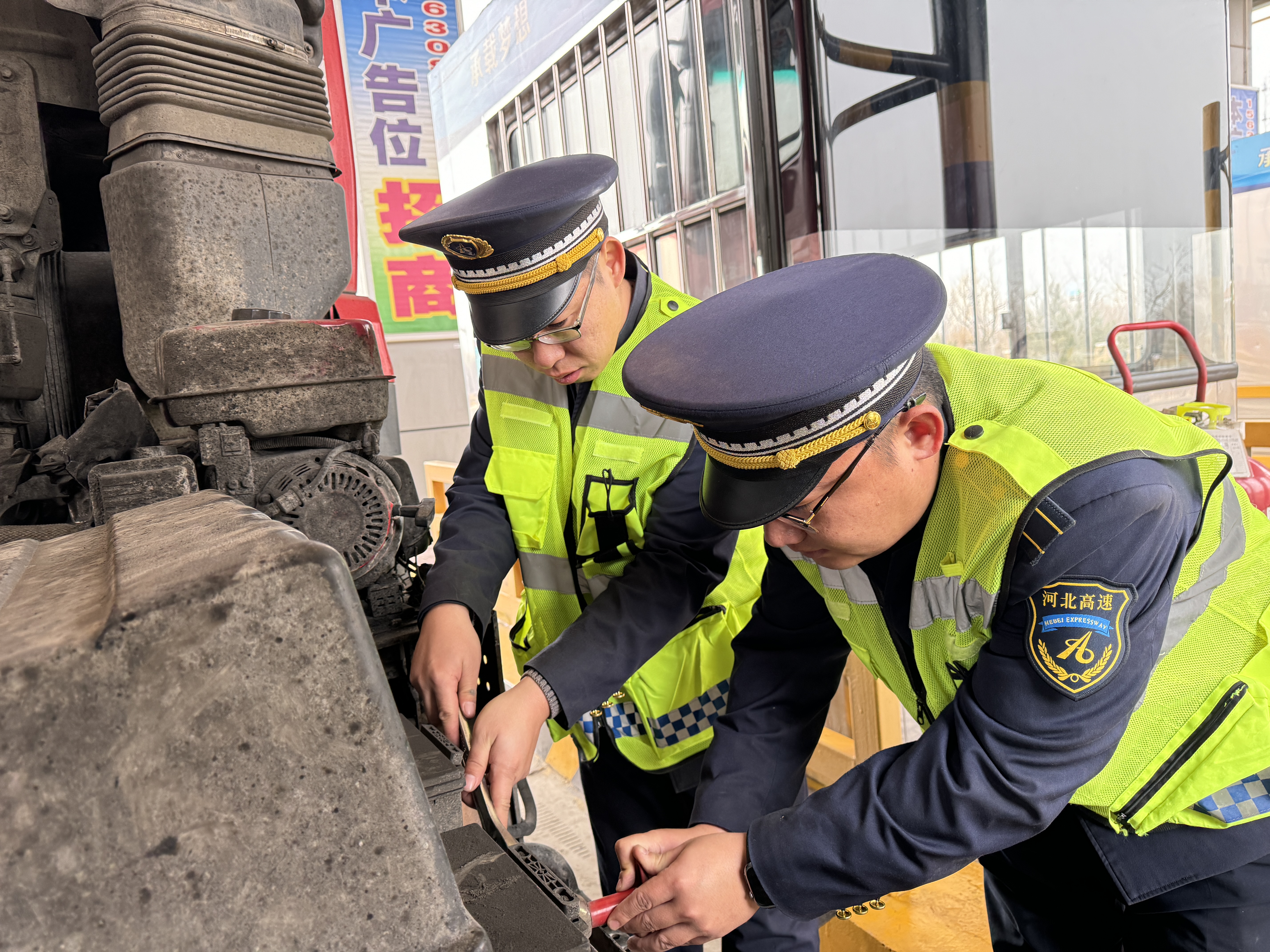 2月11日上午,一辆六轴货车驶入衡水北收费站103车道,缴费后车辆突然熄火,司机尝试了几次都无法启动,司机师傅下车围着车辆转了一圈,显得有些手足无措,很是着急。在岗收费员立即通知班长前来协助处理。