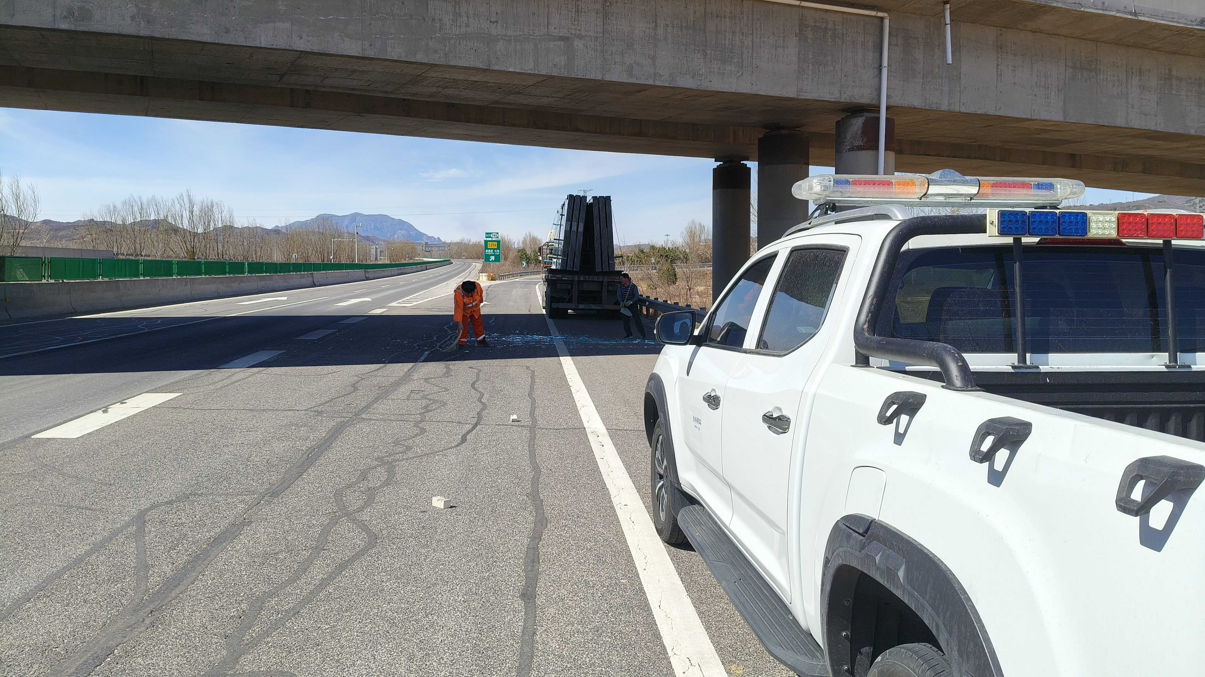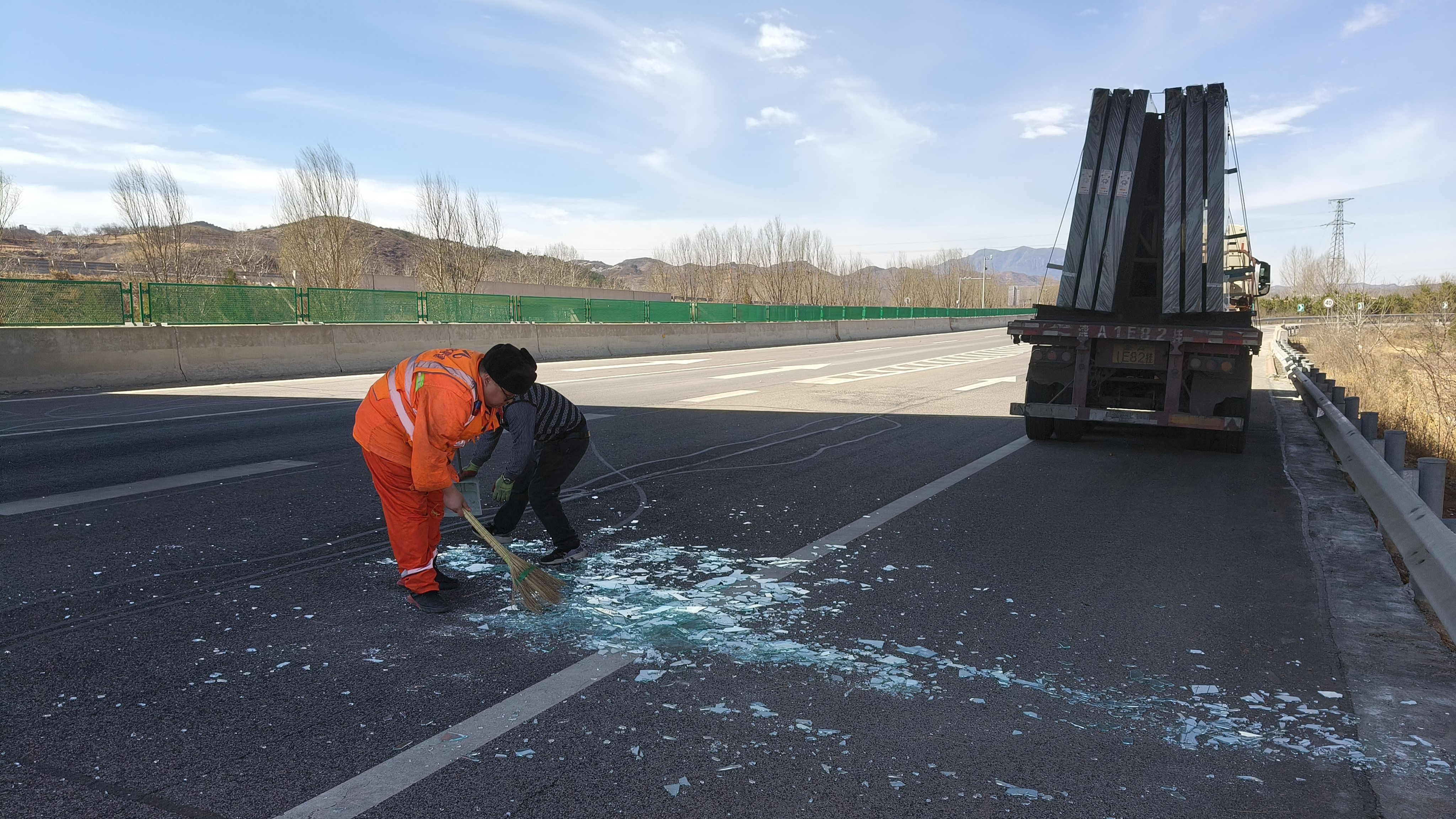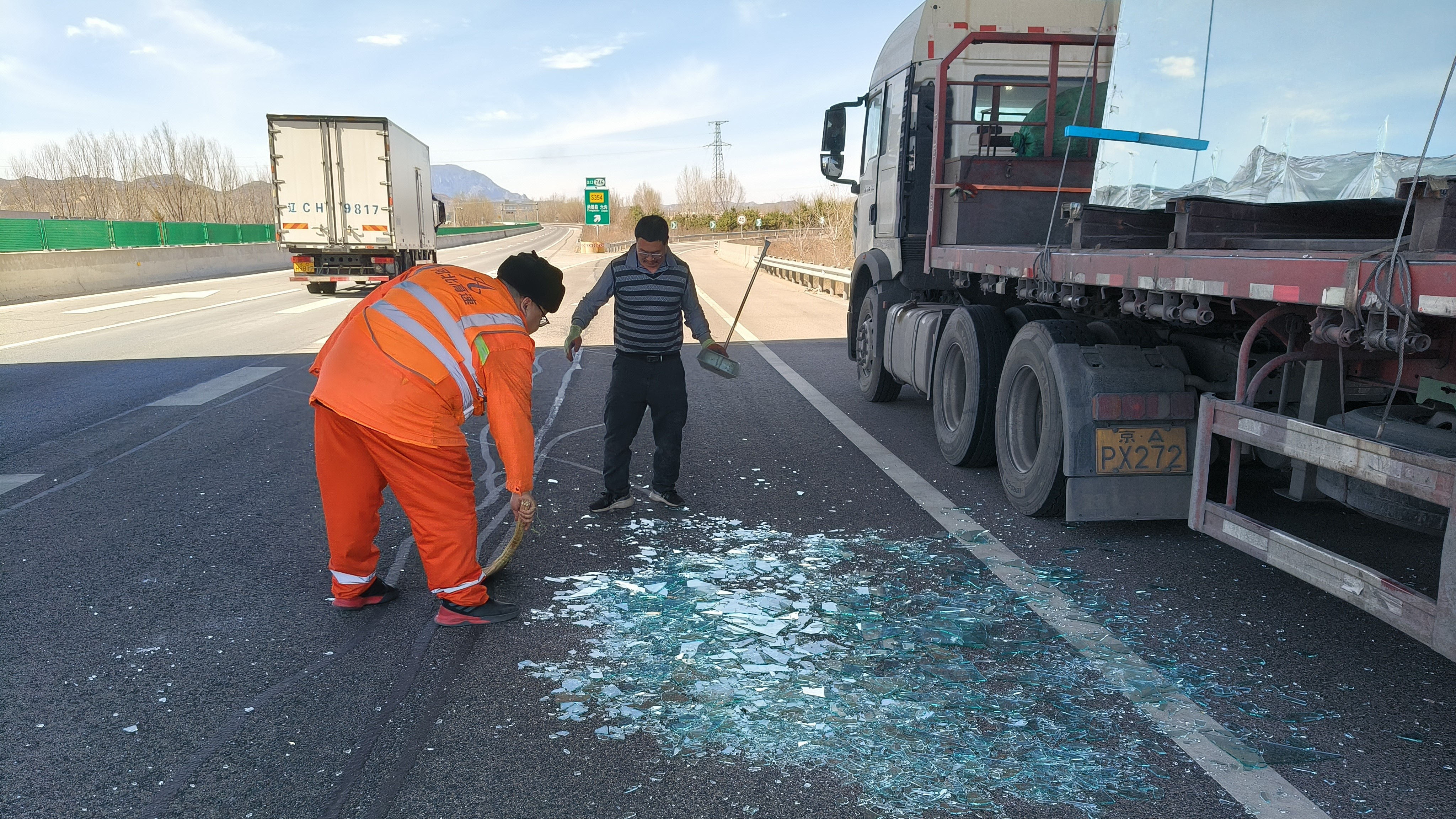 2025年3月25日,平泉隧道管理站机电员在前往保神庙隧道执行设备巡查任务的途中,上演了暖心一幕。当行经六沟收费站匝道时,发现一辆拉载玻璃的货车因意外导致玻璃散落路面,尖锐的碎玻璃不仅阻碍交通,更对过往车辆构成严重安全隐患。