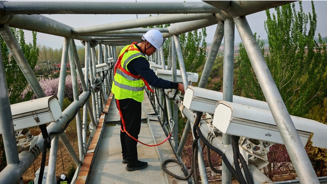 一是排查外场设备,紧固安全根基。对全线14套收费门架、8套门架式信息发布显示屏及其基础展开地毯式巡查。对门架上的抓拍相机、天线、补光灯、电缆桥架、显示屏等各项设备逐一查看。并对发现的设备松动情况进行重新加固处理,确保在恶劣天气情况下,门架各项设备牢固稳定、正常运行,为过往车辆搭建起坚不可摧的安全防线。
