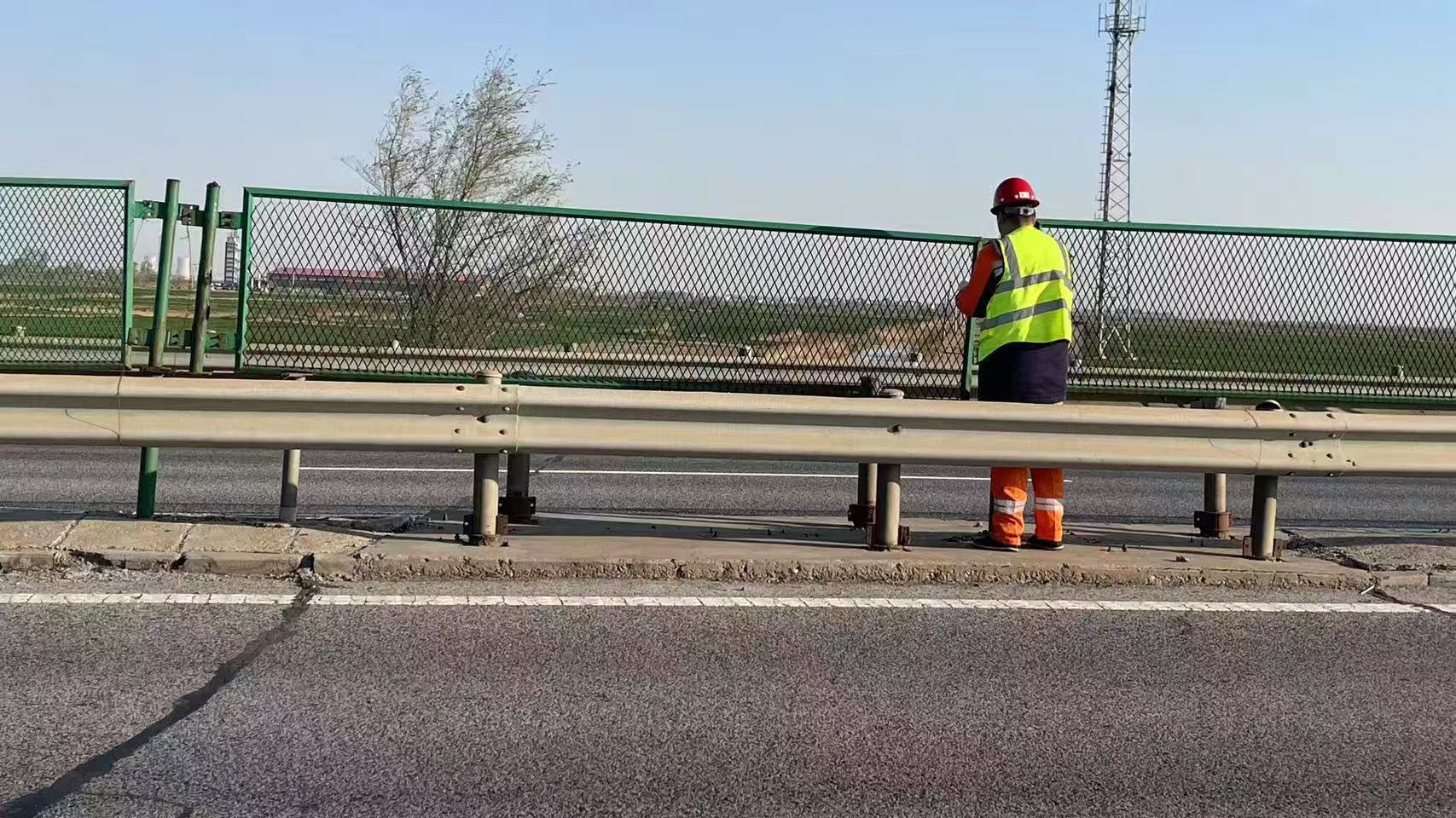 迎风逆行,抢修防线“争分夺秒”。在防落物网抢修现场,狂风呼啸中,养护队员顶着强风对变形、断裂的金属网片进行加固拆除。为防止二次事故,衡水养护队采用“多点同步作业法”,一组人员设置安全警示区并疏导车辆,另一组以最快速度对破损网片进行切割更换。此次抢修任务中,沧州分中心衡水养护队分别对武强收费站匝道、石黄高速K165+350中分带等多个位置的防落物网、防眩网进行应急抢修、加固,累计抢修防落物网300余米,防眩网30余米,及时消除了高空坠物和行车安全隐患。