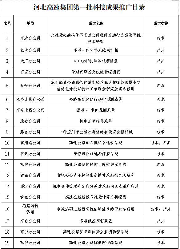 根据《开云电子开云电子首页关于征集第一批科技成果推广目录的通知》有关要求,集团公司组织开展了推广目录的评审工作,经集团公司领导同意,现将第一批科技成果推广目录予以公示。