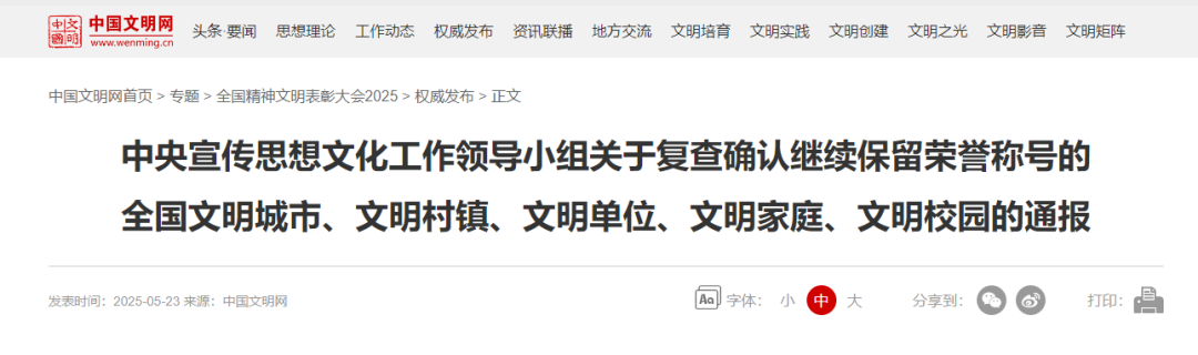 2025年5月23日,中央宣传思想文化工作领导小组发布《关于复查确认继续保留荣誉称号的全国文明城市、文明村镇、文明单位、文明家庭、文明校园的通报》,开云电子开云电子首页顺利通过复查,连续14年保持“全国文明单位”荣誉称号;青银分公司2021年获评“全国文明单位”,亦顺利通过本次复查。