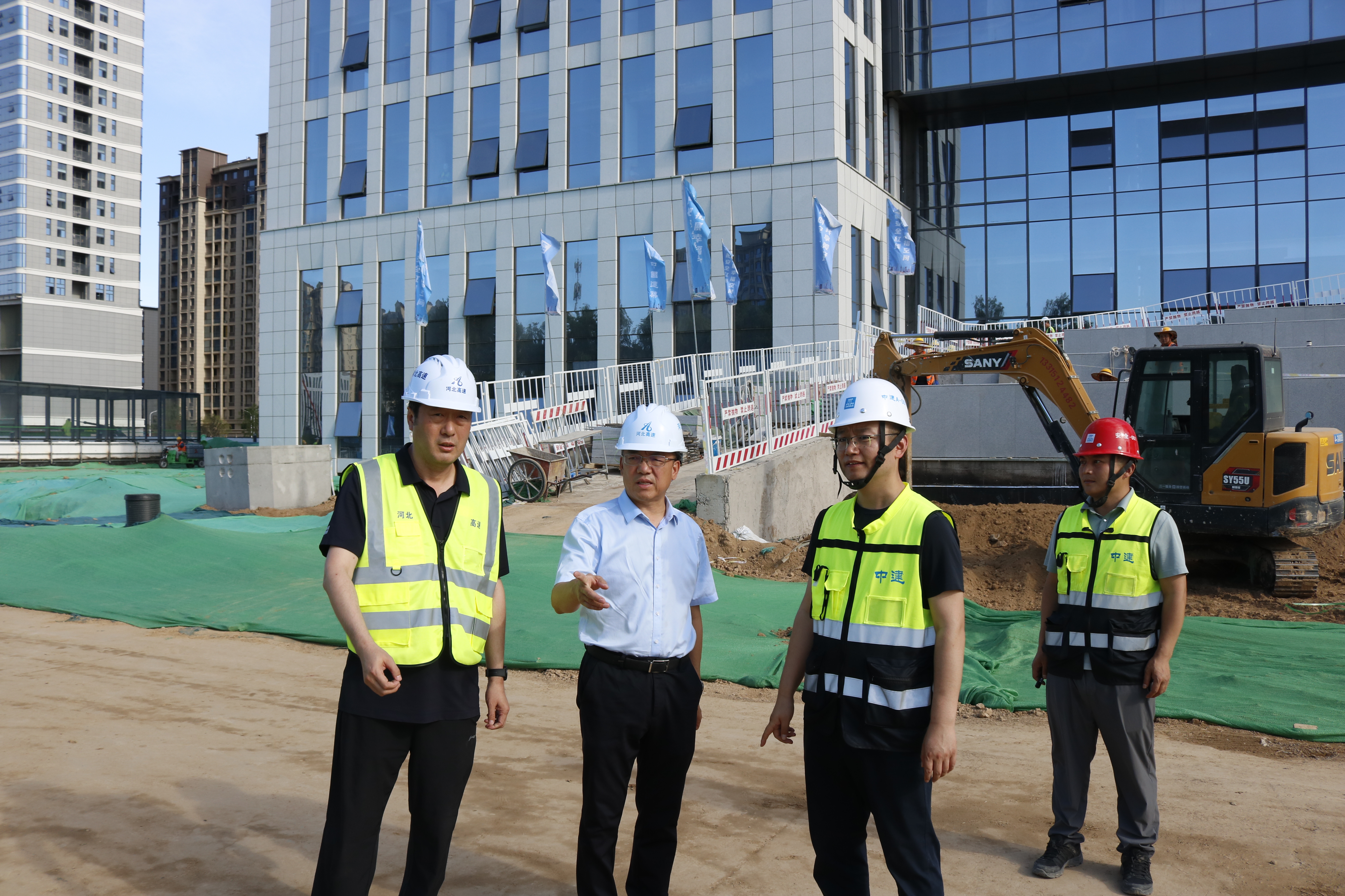 6月4日,集团公司党委书记、董事长张建公到融投商务中心续建项目调研工程建设推进情况。
