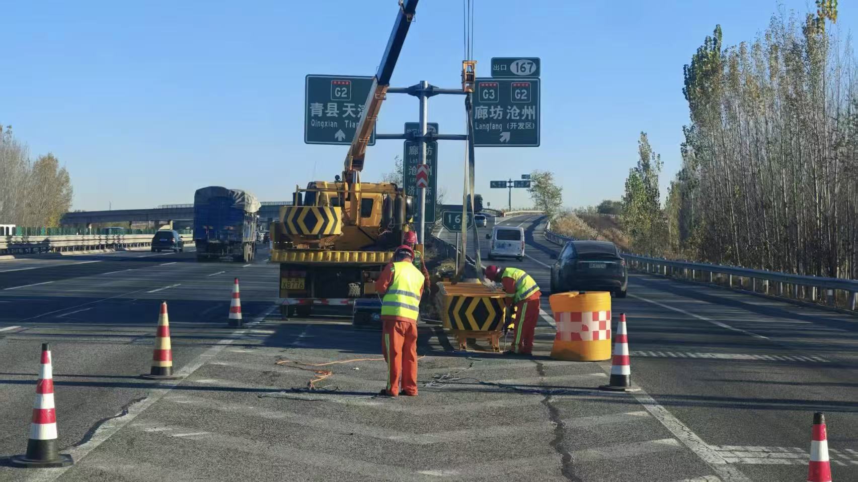 整个维修更换过程高效、规范,及时修复了存在的设施缺陷,有效提升了廊沧互通区域的行车安全系数,也展现了养护队伍快速响应、专业高效的工作作风。