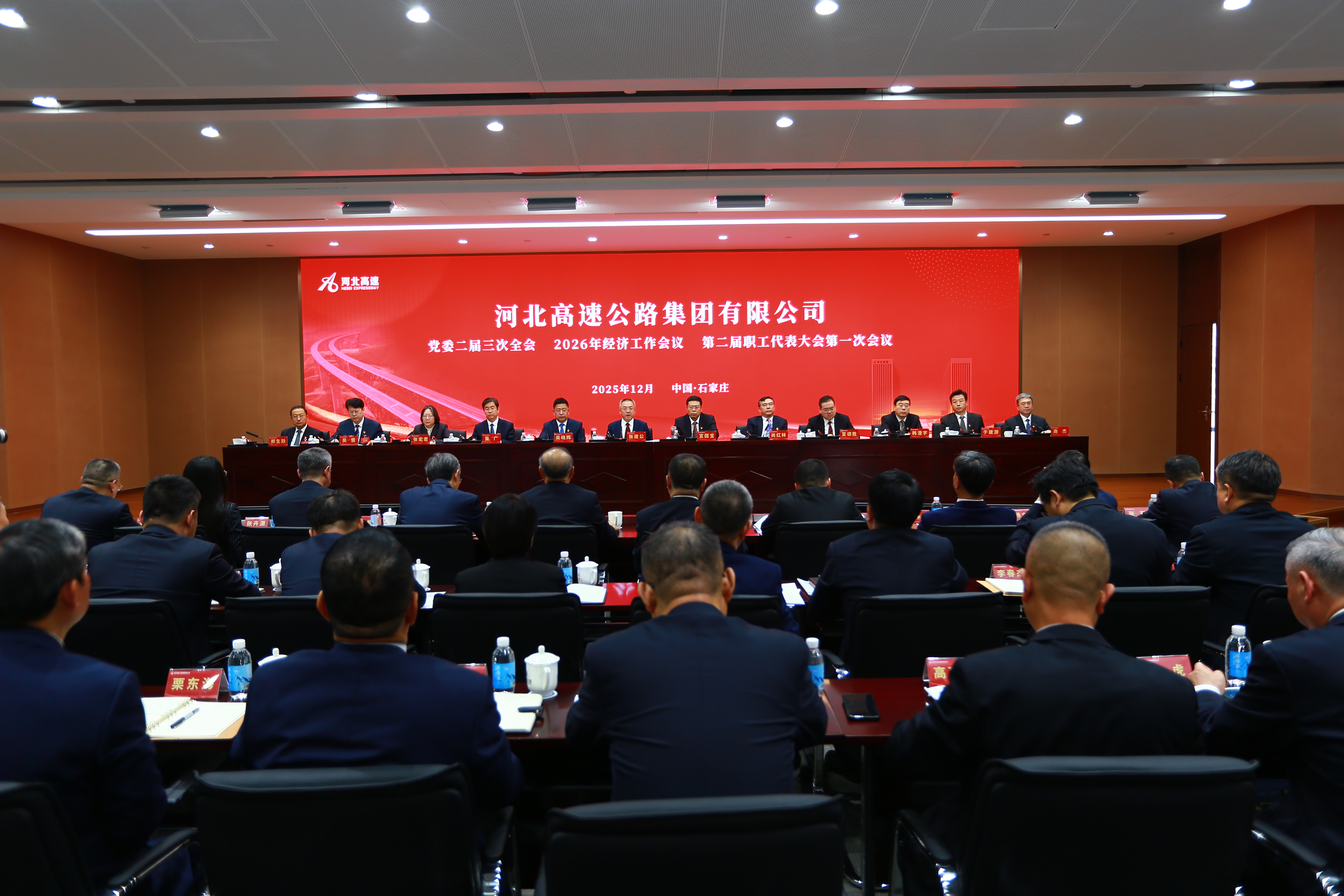 2025年12月27日,河北高速集团召开党委二届三次全会、2026年经济工作会议、第二届职工代表大会第一次会议。集团公司党委书记、董事长张建公出席会议并讲话,党委副书记、副董事长、总经理宣国宝,专职外部董事吴晓辉、外部董事尚红林,党委副书记、董事、工会主席董广,副总经理夏德胜,总工程师张宏君,副总经理兼总法律顾问韩澄宇出席会议,党委常委、纪委书记、监察专员吴震主持会议,副总经理于建游,外部董事郝生跃、商杰出席会议。