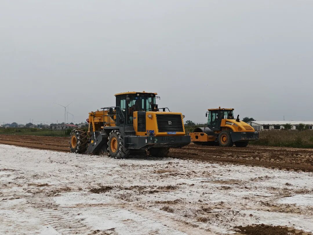 滏阳互通项目部抢抓施工黄金期,全员坚守岗位推进水稳摊铺作业。施工现场运输车辆往来有序,作业人员紧密配合,摊铺、碾压、检测等环节严格按计划推进。水稳摊铺作为关键工序,其施工质量直接关系到道路使用寿命与安全,为后续工程奠定了坚实基础。